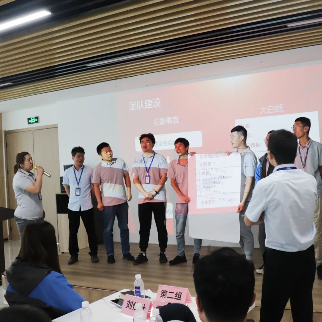 之后,各小組通過團隊學(xué)習(xí)比拼,聚焦團隊力量,共同成長。對了,悄悄告訴大家,小組最后一名將獲得全員50個俯臥撐的“勵志獎勵”喲~