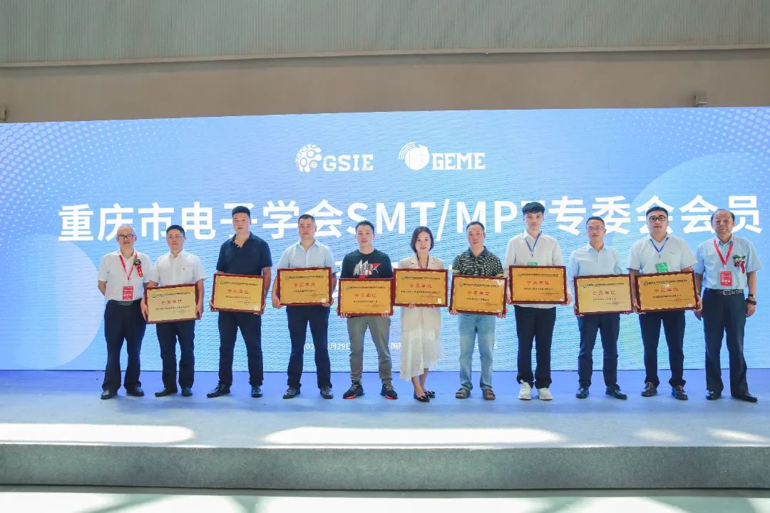 本屆博覽會(huì)同期舉辦了“GEME 2022電子產(chǎn)業(yè)鏈創(chuàng)新發(fā)展大會(huì)”,匯聚智造精英,共同為電子產(chǎn)業(yè)熱點(diǎn)話題展開(kāi)交流。會(huì)上,重慶市電子學(xué)會(huì)表面貼裝與微組裝技術(shù)委員會(huì)為深圳市海目星激光智能裝備股份有限公司授會(huì)員單位牌匾。