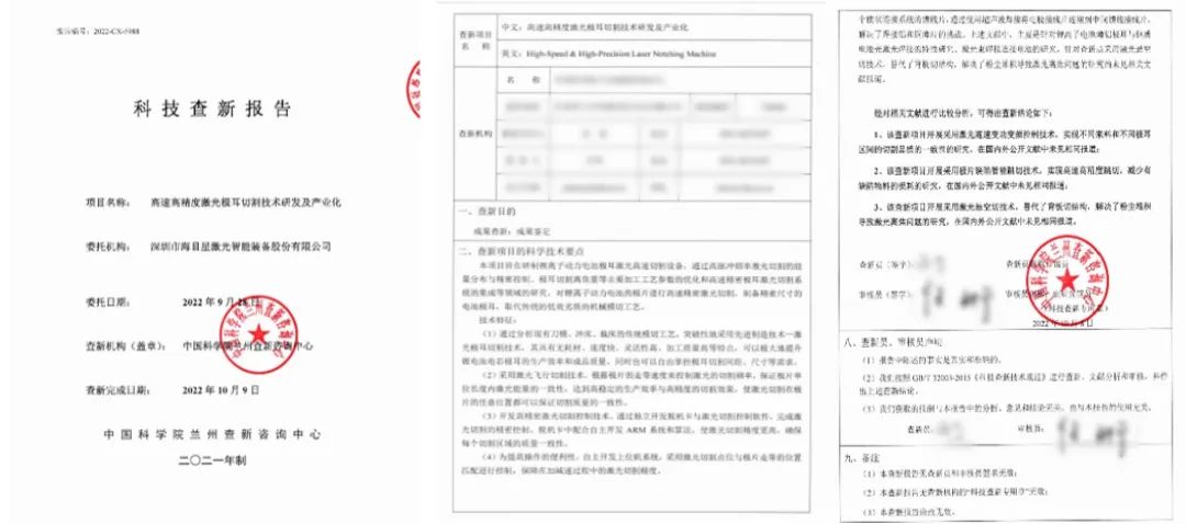 《高速高精度激光極耳切割技術(shù)研發(fā)及產(chǎn)業(yè)化》科技查新報告